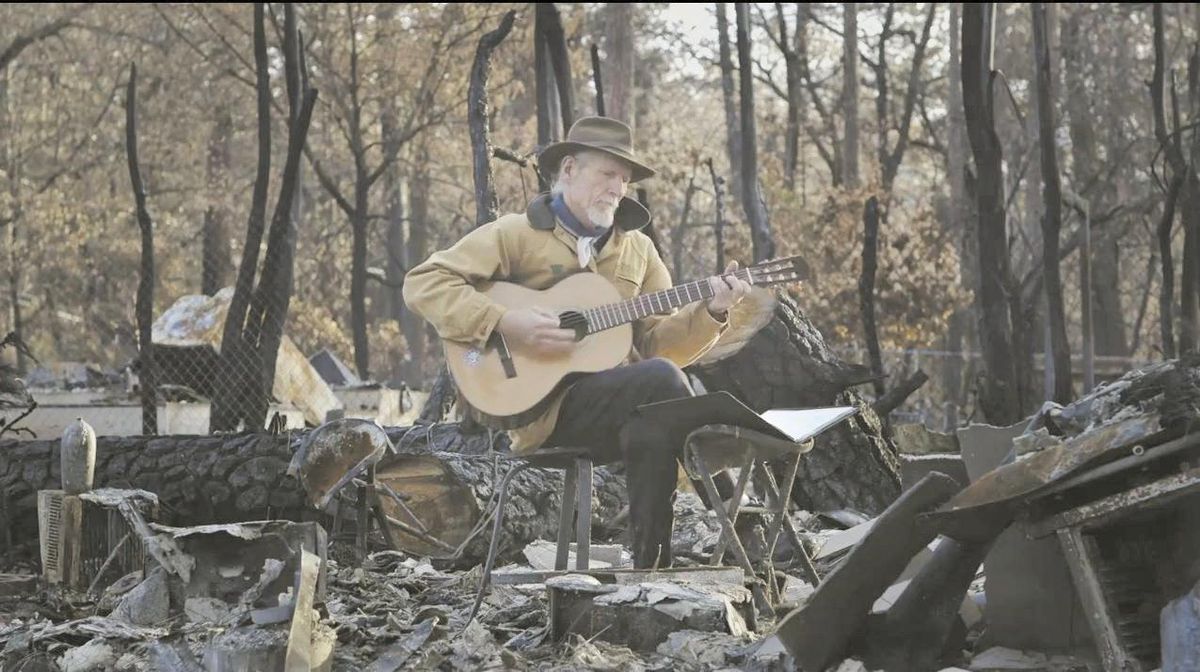 This is a tough watch. Longtime local musician John-Michael Sun sits in a chair in the ashes of his destroyed Paradise home and plays guitar and sings in response to the tragedy. “Well I had me a garden, and everything I grew there/kept me thinking, ‘I’m OK,’ here in my easy chair/I finally had me some roses that weren’t eaten by deer/It was a good life, but now I cry me a tear.”