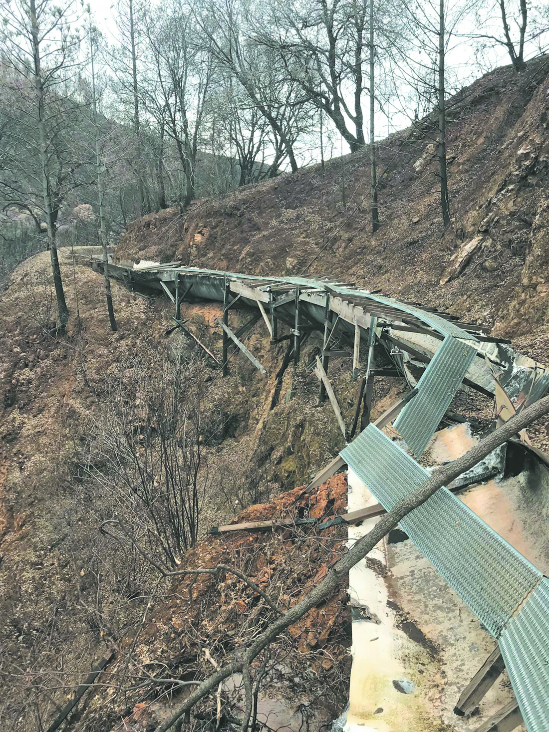 When the Camp Fire tore through the Ridge in November 2018, it also destroyed the uppermost portion of the Miocene Canal (better known as the Paradise flumes)—a major water conveyance system for Butte Valley residents, many of whom are farmers and ranchers. PG&E owns the canal and has contracts with water users downstream. In April, an advocacy group of water users called the Miocene Canal Coalition aired their grievances before the Butte County Board of Supervisors. The dry canal was jeopardizing their livelihood, they argued, posing a fire risk and causing native habitat to disappear. The county then hosted a series of meetings between the utility and water users to forge a path forward.