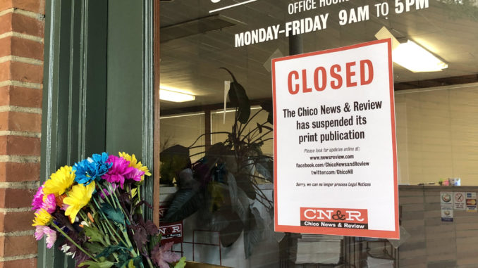 As we reported last week, the CN&R has suspended its print operations. Everyone on our staff has been laid off, including yours truly. But we’re not alone. Many community newspapers around the country have either suspended their operations or have laid off staff and are operating with bare bones.