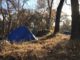 A sign outside a tent at a site of a former encampment under Highway 99 in Bidwell Park. (Photo by Chris Nelson)