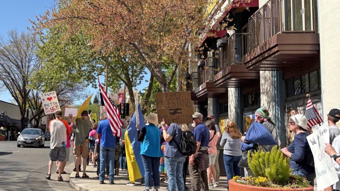A protest in Downtown Chico. Photo by Tina Flynn