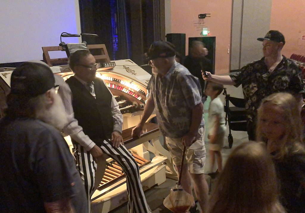 Between films, Moreno gave the audience a personal tour, as well as a demonstration of every sound the Wurlitzer could make, from strings and woodwinds to brass and percussion. He also showcased the instrument’s array of sound effects.