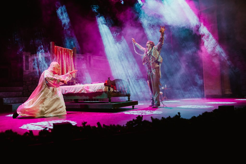 “It’s really nice to have an established theater space to work in, but it’s also limiting in some ways because it confines you to what that space is capable of,” Horst reflects. “What we really love is the creativity that pushes us towards more site-specific productions. When we do Shakespeare in the Park every summer, even though we’re always using that outdoor space, we literally create something from nothing every year. It looks a little bit different for each show that we do. We find that to be super exciting and artistically fulfilling because we can tailor the look of the show to the concept or the artistic vision for that particular year.”