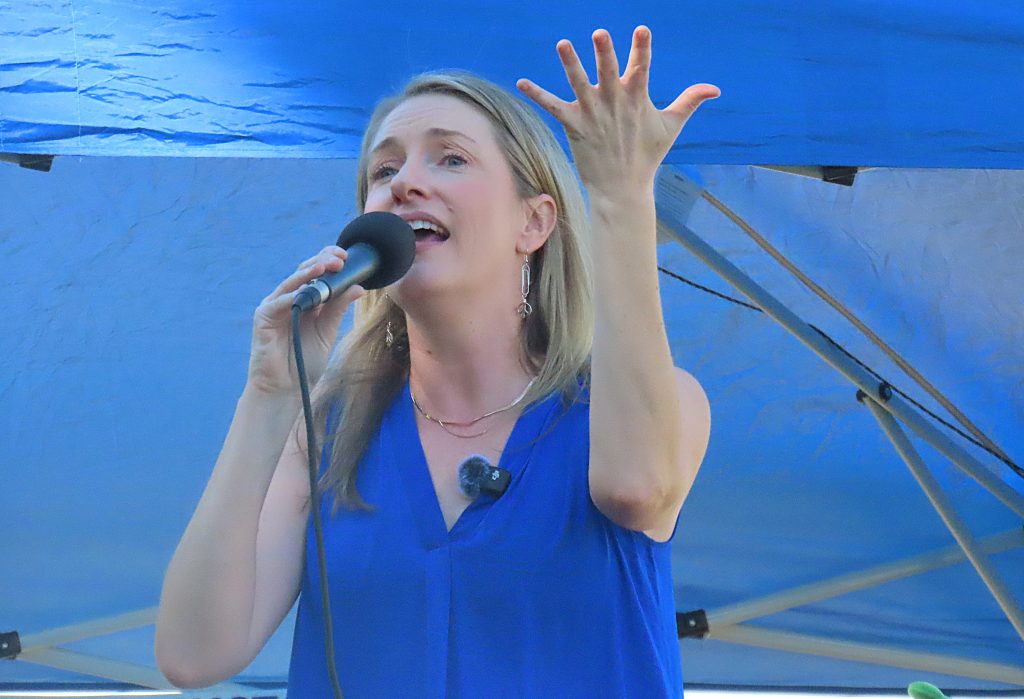 Although political speakers did not dominate Chico’s “No Kings” event, newly announced congressional candidate Audrey Denney spoke to the Wildwood Park crowd, encouraging them to fight against food insecurity and in support of affordable housing, health care and fair elections.