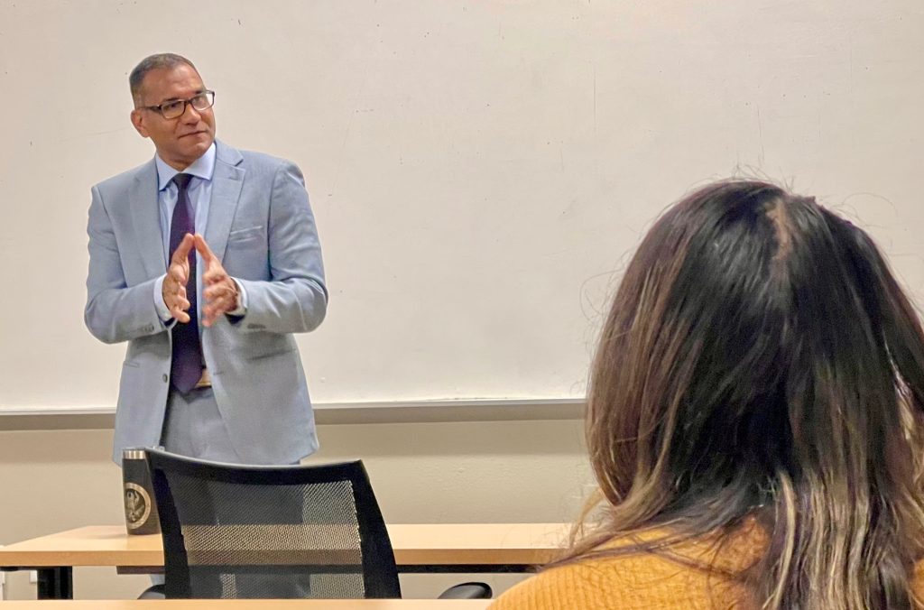“He’d talked to students about his path from being born into poverty in India, and then coming here to the United States and becoming a federal law enforcement officer, and when he did, he had such a good connection with the students,” Constant says. “I was really impressed with how he engaged them on a personal level and how they gravitated towards him.”