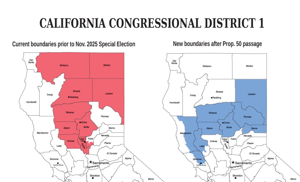 The results came early Tuesday night as the Associated Press called the victory moments after polls closed at 8 p.m. It means that five California congressional districts, including Chico’s District #1, will be reshaped to create advantages for Democratic candidates in the 2026 elections.
