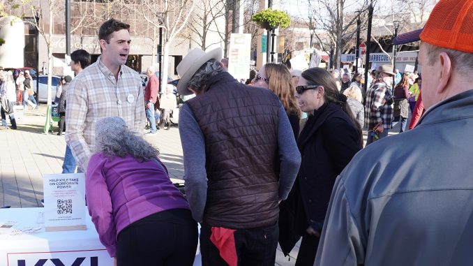 Congressional candidate Kyle Wilson meeting the public. Photo courtesy of Kyle for Congress.