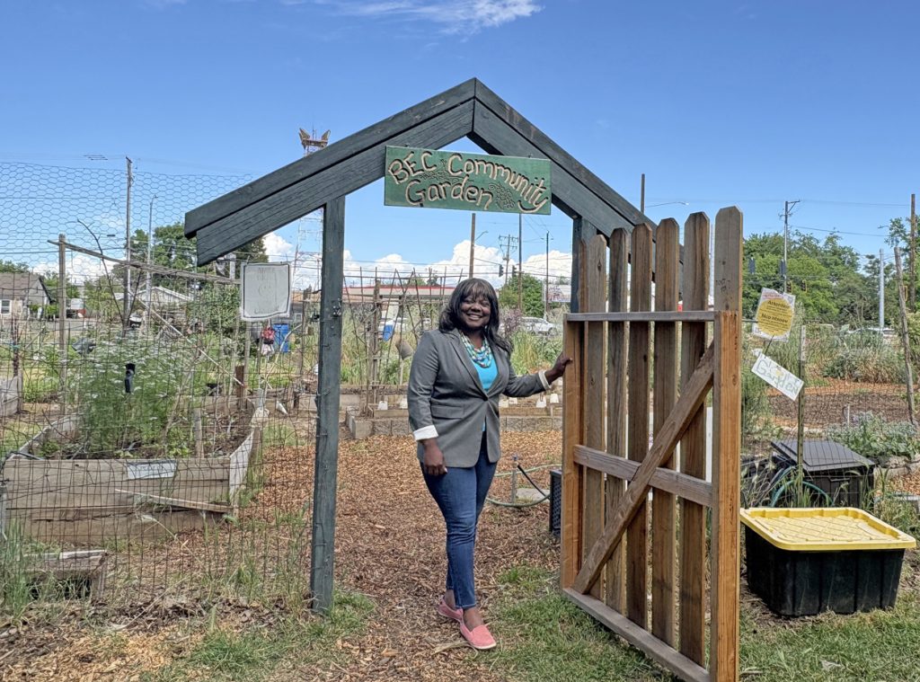 Courtney Ellignton at one of BEC’s community gardens, just four weeks into her position as Executive Director. CN&R photo