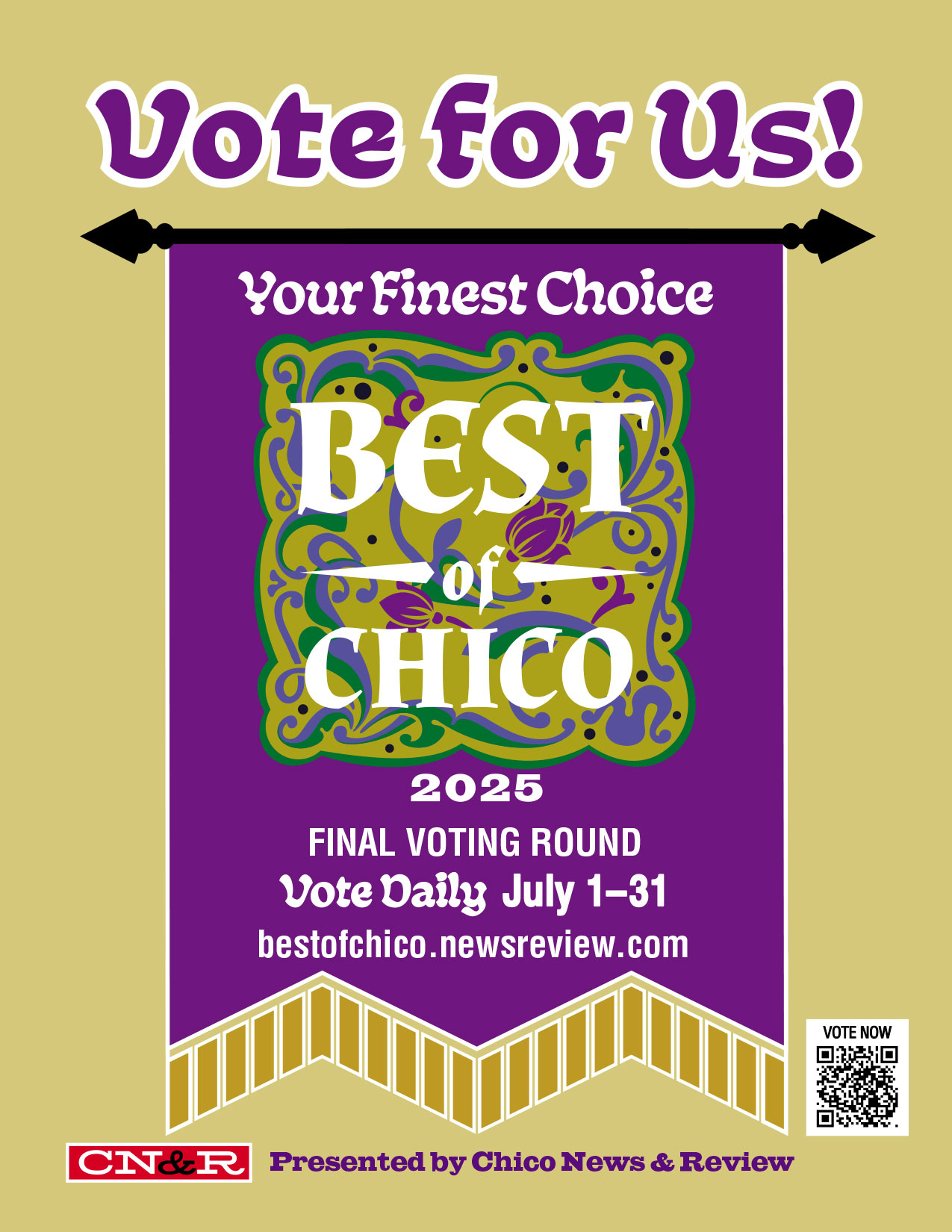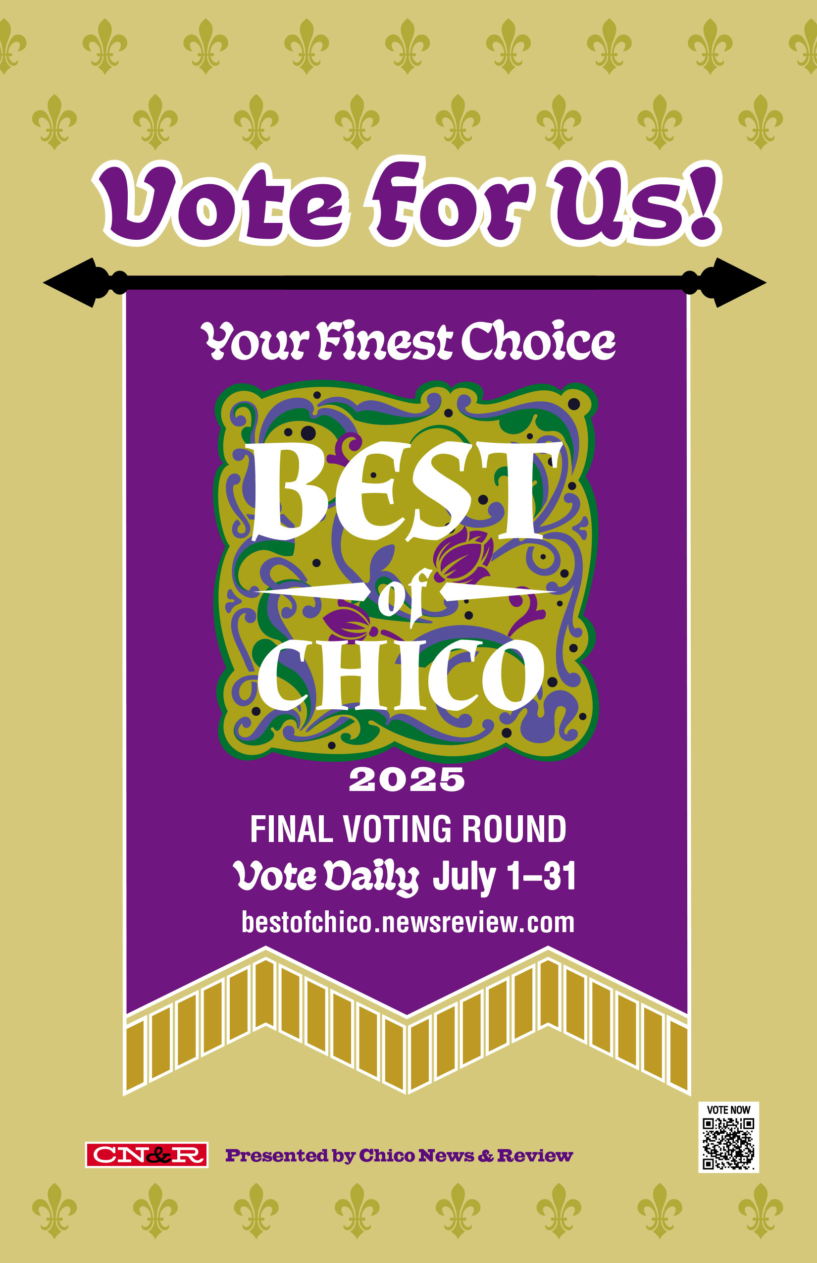 Hark! Hast thy business been named among the noble Finalists in the Best of Chico 2025? Then tarry not! Raise thy standards high, sound the trumpets, and bid the townsfolk cast their final votes in thy honor! Let word fly on wingèd scroll and social parchment—post, proclaim, and promote thy cause until the last vote is tallied!